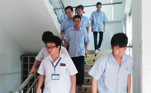 下午四點(diǎn),疏散逃生演練正式開(kāi)始,各部門(mén)的員工按照各車(chē)間負(fù)責(zé)人指示從安全通道及時(shí)有序撤離,及時(shí)到達(dá)緊急集合處,籃球場(chǎng)。