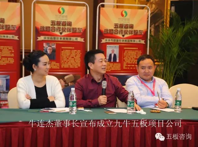 五板咨詢2014年成立至今,從無到有,從小到大,經(jīng)歷了兩年的艱苦創(chuàng)造摸索,五板如今也生根發(fā)芽如雨后春筍,9家項(xiàng)目公司遍布中國大地。華商30期班長(zhǎng)——深圳市前海微加控股有限公司牛連杰董事長(zhǎng)現(xiàn)場(chǎng)宣布和五板咨詢成立九牛五板項(xiàng)目公司,成為我們五板咨詢第10家項(xiàng)目公司!
