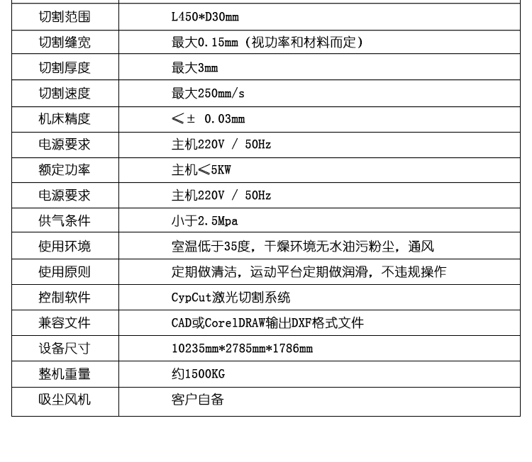 良好的接地:我公司生產的激光設備均配有自動的安全保護裝置,只有正確、良好的接地才能使之正常運作,為了保障您的人身財產安全,強烈要求客戶為設備提供良好的接地條件。同時,激光電源、切割控制系統均使用了工業微處理器進行數字化控制,只有良好的接地,才能保證他們正常穩定的工作。