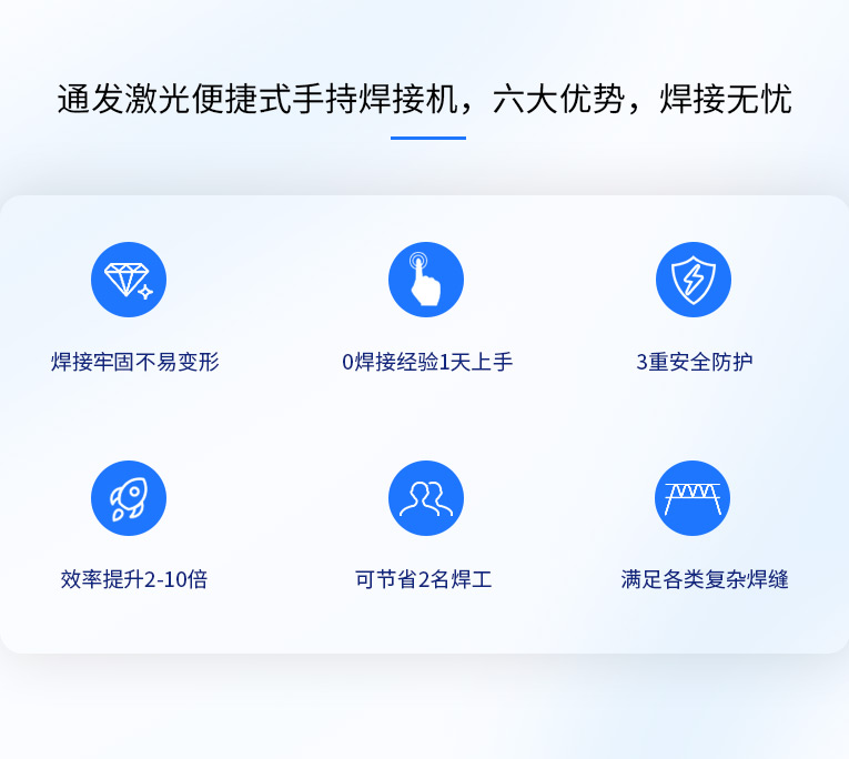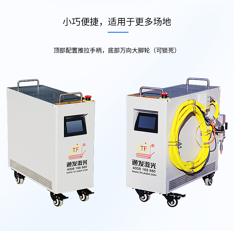 通發激光便捷式手持激光焊接機,小巧便攜,方便移動,適合戶內外外工地移動焊接,是遠距離焊接大工件的全新焊接利器。