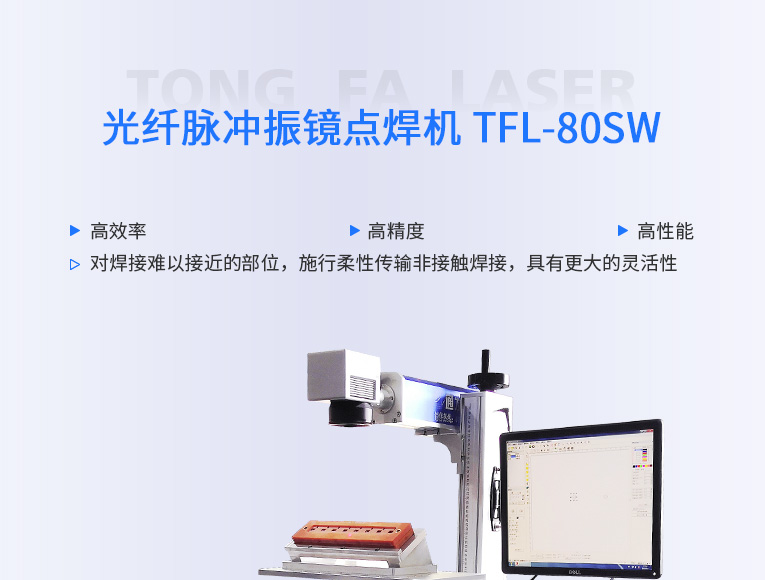 通發(fā)激光TFL-80SW振鏡激光焊接機(jī),采用主振蕩器功率放大 MOPA(Masrer Qscillator Power Amplifier)結(jié)構(gòu),實(shí)現(xiàn)脈沖寬度和頻率獨(dú)立可調(diào)的特點(diǎn),在對(duì)脈寬和頻率進(jìn)行改動(dòng)的情況下仍保持較高且穩(wěn)定的峰值功率輸出,適用于電池、小五金等多個(gè)行業(yè)的激光打標(biāo)、激光焊接應(yīng)用。