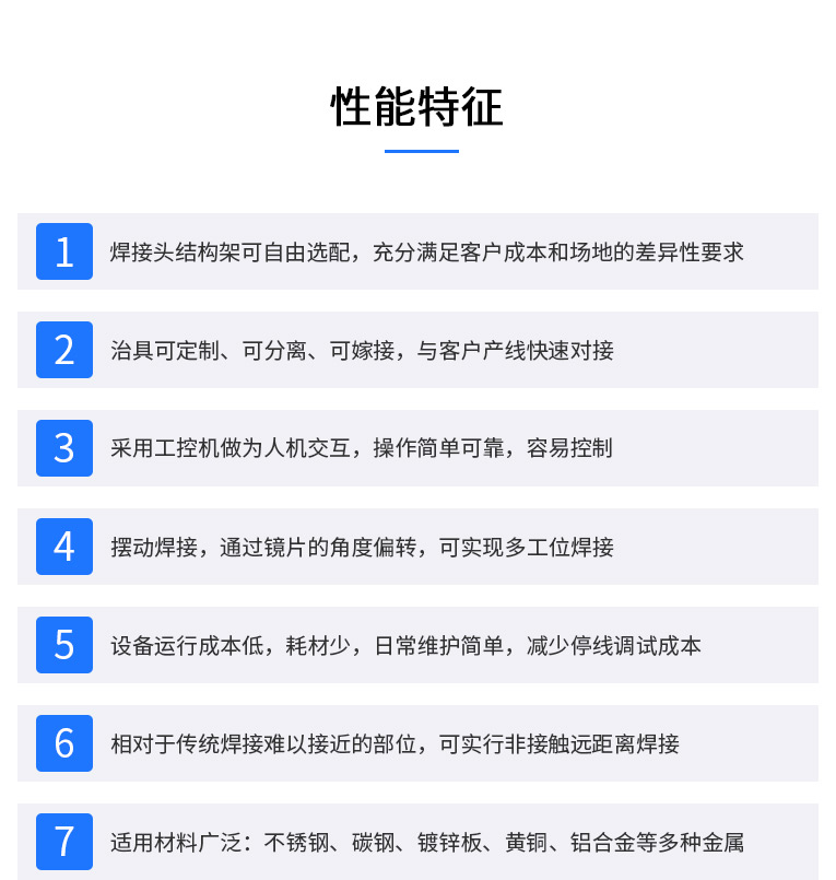 2、強(qiáng)大的PC控制,易于編程、調(diào)試和維護(hù)。可完成自動(dòng)或半自動(dòng)的點(diǎn)焊、對(duì)接焊、疊焊、密封焊,針對(duì)復(fù)雜的平面直線、圓弧及任意軌跡的焊接。
