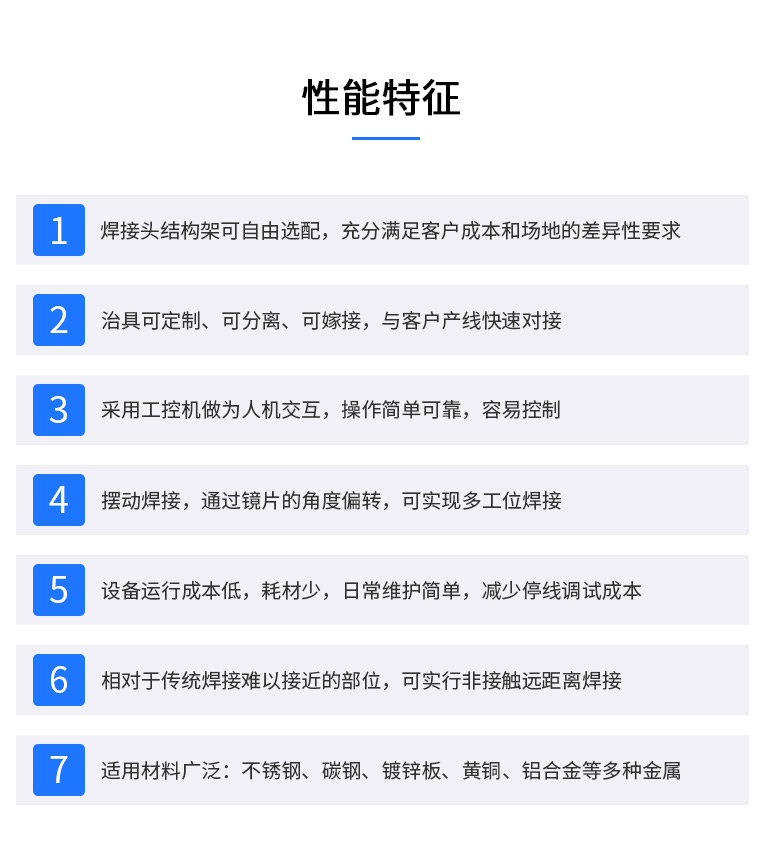 2、強(qiáng)大的PC控制,易于編程、調(diào)試和維護(hù)。可完成自動(dòng)或半自動(dòng)的點(diǎn)焊、對接焊、疊焊、密封焊,針對復(fù)雜的平面直線、圓弧及任意軌跡的焊接。